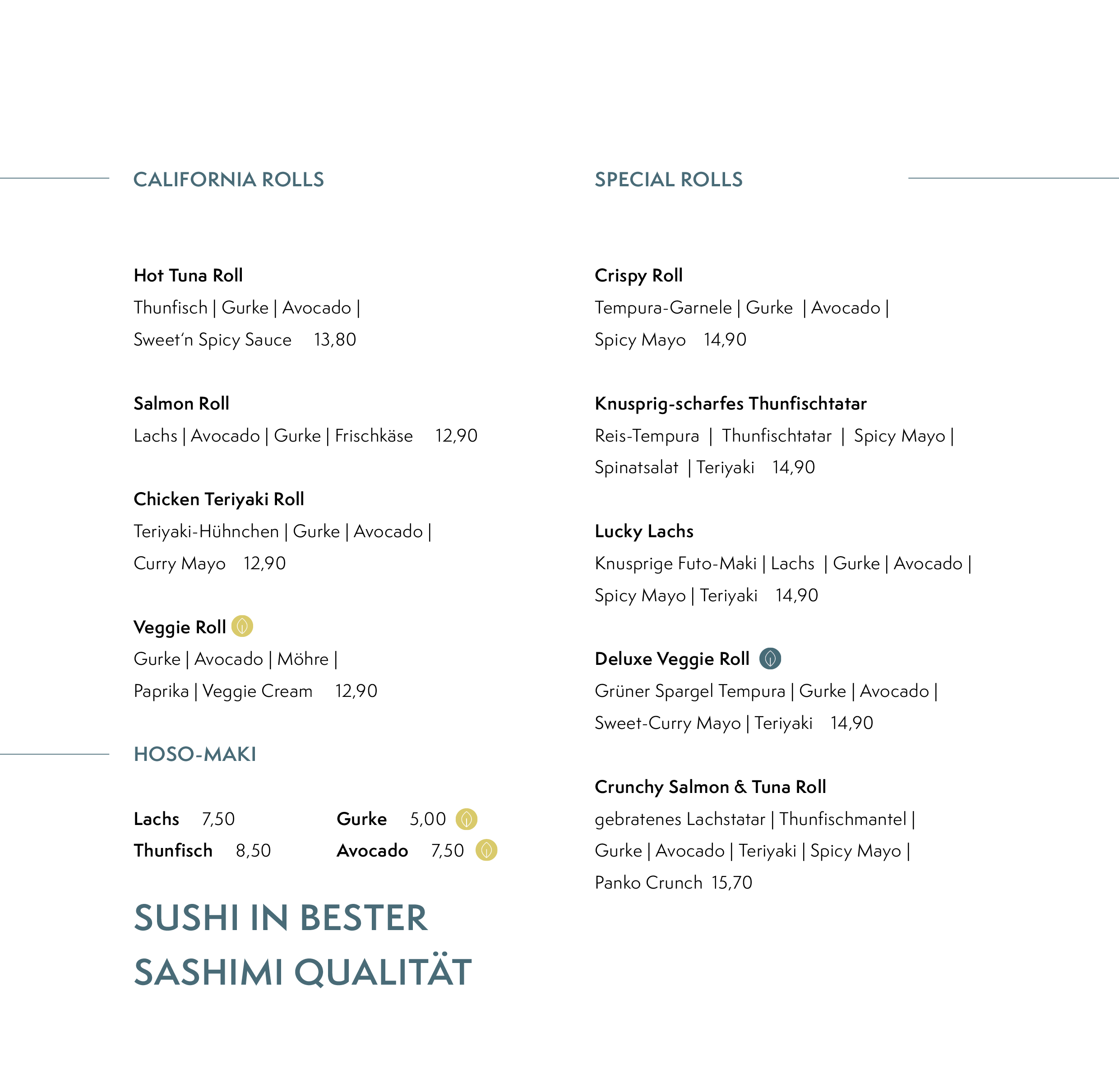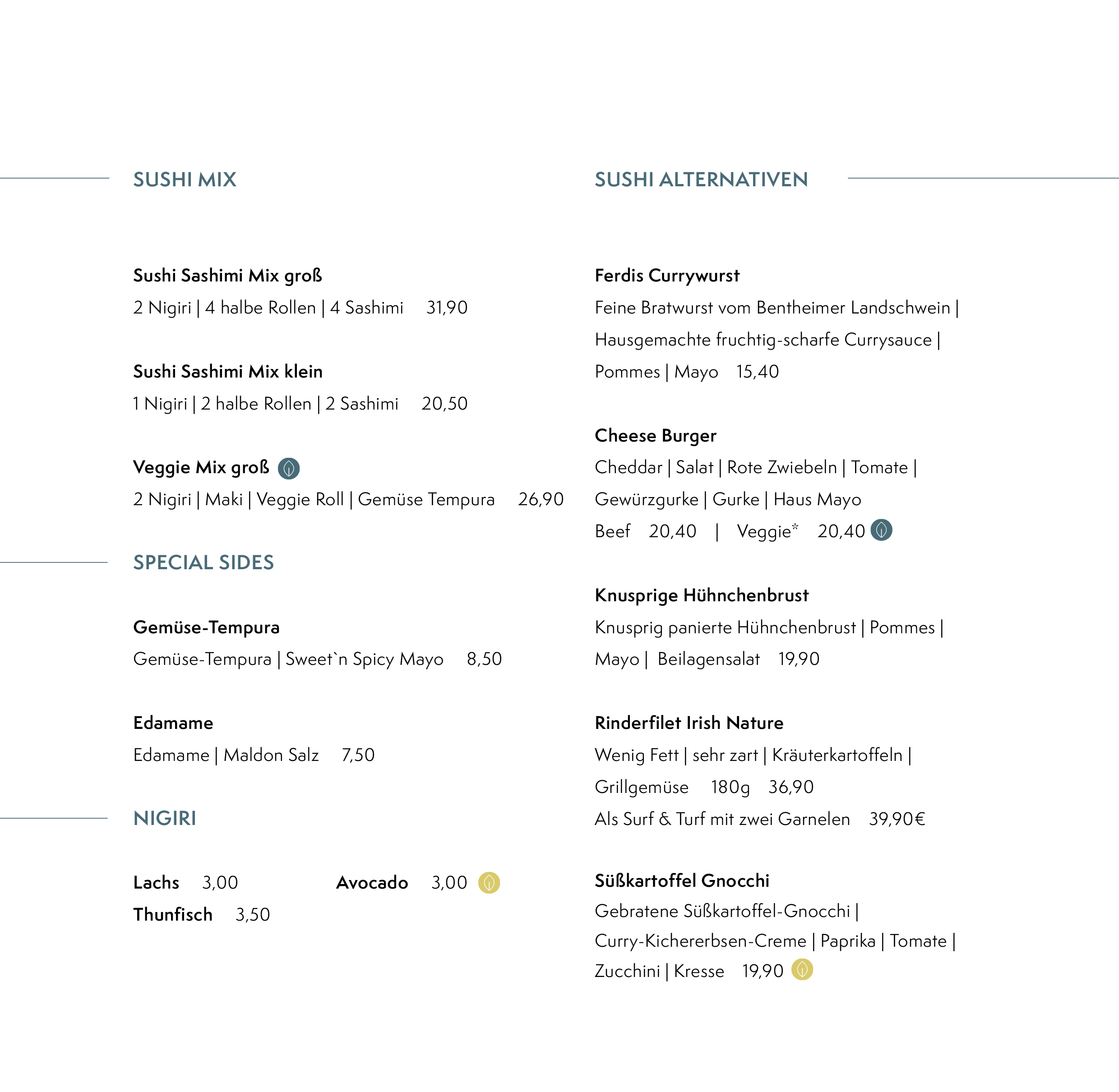 Zusätzlich zur normalen Speisekarte.
